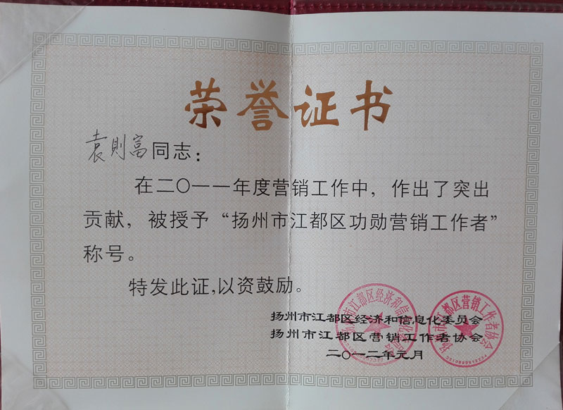 榮獲 揚(yáng)州市明星企業(yè) 重合同、守信用